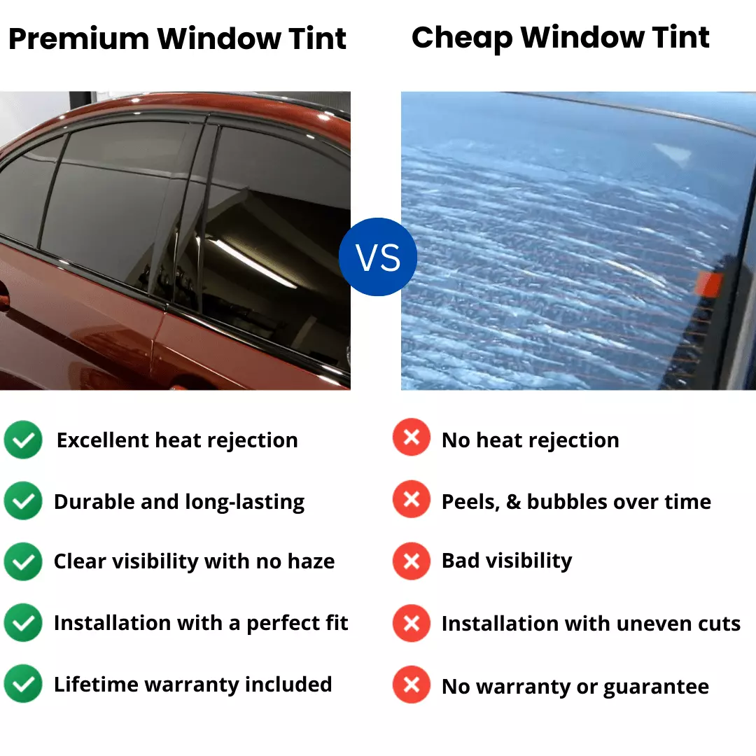 ✔ Instead of cheap low quality film, our tint blocks 90% of the Infrared heat - no more driving around in an oven